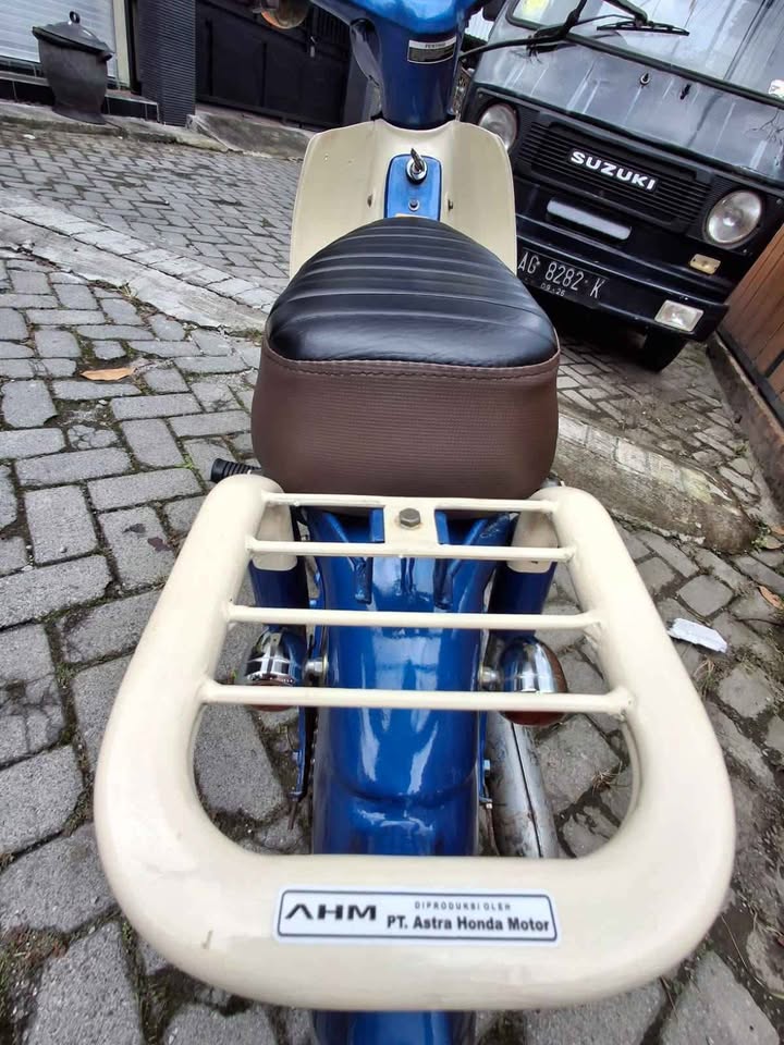 Motor hobi, memang yaa… modifikasi sesuai selera pemilik dong ya. Tentunya beda orang pasti beda keinginan.. termasuk salah satunya Honda C-70 ini. Bila yang sudah-sudah, banyak banget yang memilih aliran restorasi alias dikembalikan ke tampilan standar orisinalnya. Tapi masbro satu ini, selain balik ke tampilan standar, juga dibikin pangling dengan ukurannya yang ala bonsai, imut