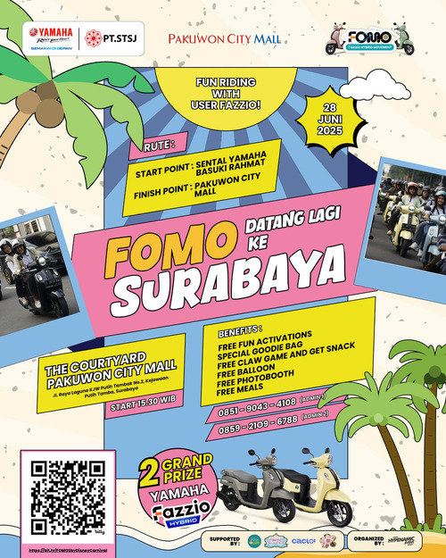 “Kami mengundang seluruh masyarakat Surabaya dan sekitarnya untuk mengunjungi booth kami, merasakan langsung keseruannya, dan mencoba peruntungan untuk membawa pulang Yamaha Fazzio. Jangan lewatkan juga aktivitas ‘Fazzio Hybrid Movement’ yang kami siapkan setiap akhir pekan,” tambah Rifany.