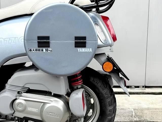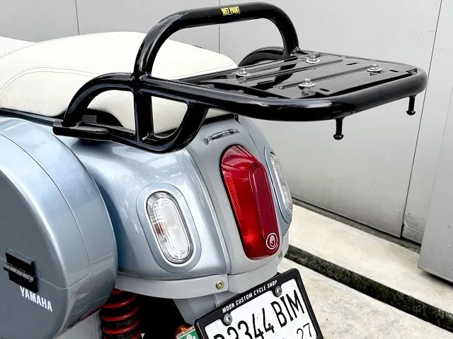 Box tambahan berbentuk lingkaran di sisi kiri menjadi ciri khas utama motor ini karena tidak hanya menambah estetika, tetapi juga sisi fungsionalnya untuk membawa barang harian dan menjadi solusi mobilitas praktis.