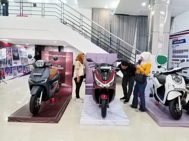 Di area booth Honda, pengunjung bisa langsung mencoba sensasi berkendara lewat test ride berbagai motor unggulan seperti New Honda BeAT dan BeAT Street. Kegiatan ini menjadi kesempatan bagi masyarakat Surabaya dan sekitarnya untuk merasakan langsung kenyamanan, performa, dan teknologi terbaru sepeda motor Honda.