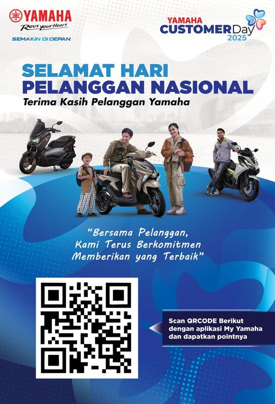 “Momentum Hari Pelanggan Nasional selalu menjadi saat yang istimewa bagi Yamaha untuk memberikan apresiasi terbaik. Melalui promo khusus ini, kami ingin menghadirkan pengalaman servis yang lebih hemat, sekaligus memastikan konsumen tetap mendapatkan kualitas layanan terbaik dengan teknisi handal dan sparepart asli Yamaha,” ungkap Ilham Wahyudi, General Manager After Sales PT Surya Timur Sakti Jatim (Yamaha STSJ).