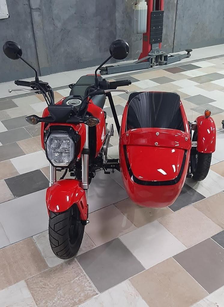 Sisi ukuran saja yang lebih kecil, hehehe. Dengan mesin tiduran ala bebek 125cc, performanya cukup untuk sebuah motor hobi. Dan iseng-iseng buka referensi modifikasi buat nih motor, ada penyedia yang menyiapkan sebuah kereta gandeng alias sespan khusus untuk Honda Grom 125