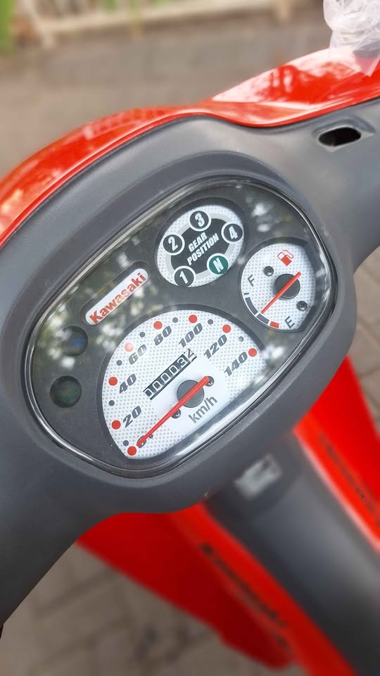 Nah, ternyata hal tersebut juga ada disini. Yaitu motor Kawasaki Blitz lansiran tahun 2004 dalam kondisi baru. Odometernya saja baru jalan 4 kilometer. Aseli… 4 kilometer, cuma didorong bergeser kali yaaa