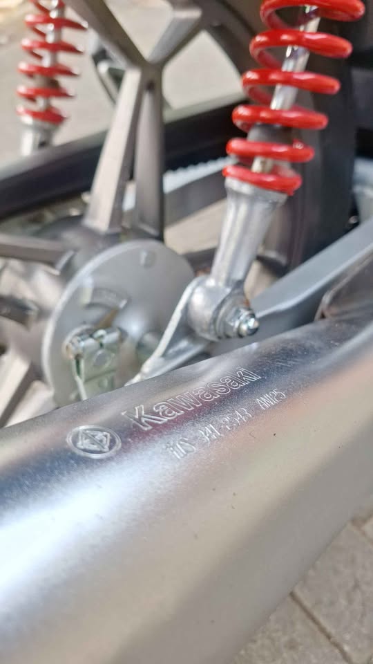 Namun bedanya, nih bebek Kawasaki ini sudah dicuci bersih dan tampil kinclong alias mengkilap. Ya laiknya moto baru yang dipajang di dealer motor
