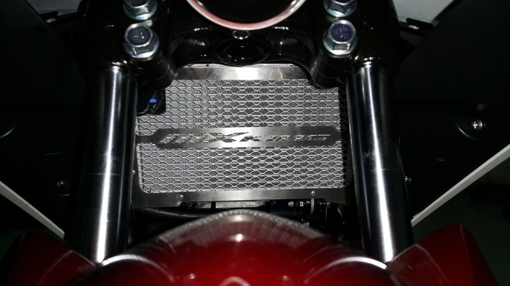 Kalau yang ini adalah pelindung radiator MX-Kinbg 150. Pemasangan juga mudah, tinggal plek pada bagian depan radiator dan berfungsi maksimla melindungi radiator. Bahannya alumunium dan eksklusif dengan logo MX-King. Harganya IDR 150.000