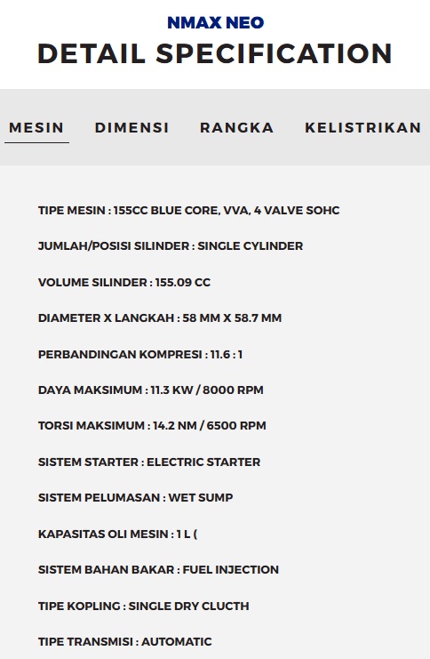 Spesifikasi Yamaha NMAX Neo lengkap disini