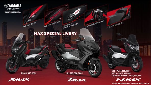 Bertajuk MAX Special Livery, Yamaha memperkenalkan livery special ini sebagai perayaan 25 tahun perjalanan Yamaha TMAX secara global sejak pertama kali hadir pada 2001 silam. Pada momen ini, Yamaha merilis livery special yang menampilkan perjalanan historis Yamaha TMAX sebagai global model heritage dan bagian MAX Yamaha, sekaligus membangun ikatan yang solid dengan seluruh pengguna setia.