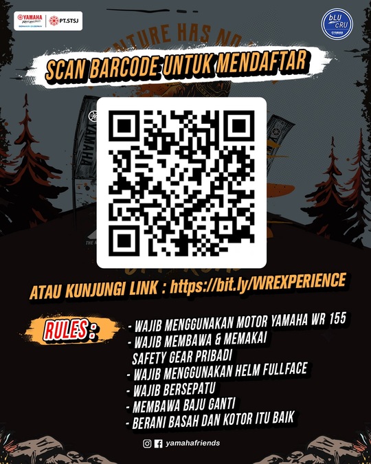 Oh iya, even ini khusus untuk pengguna Yamaha WR155R aja ya.. boleh pemilik atau peminjam. Maksudnya, kalo belum sempat beli (halah), boleh tuh minjem punya temannya buat ikutan trabas kali ini