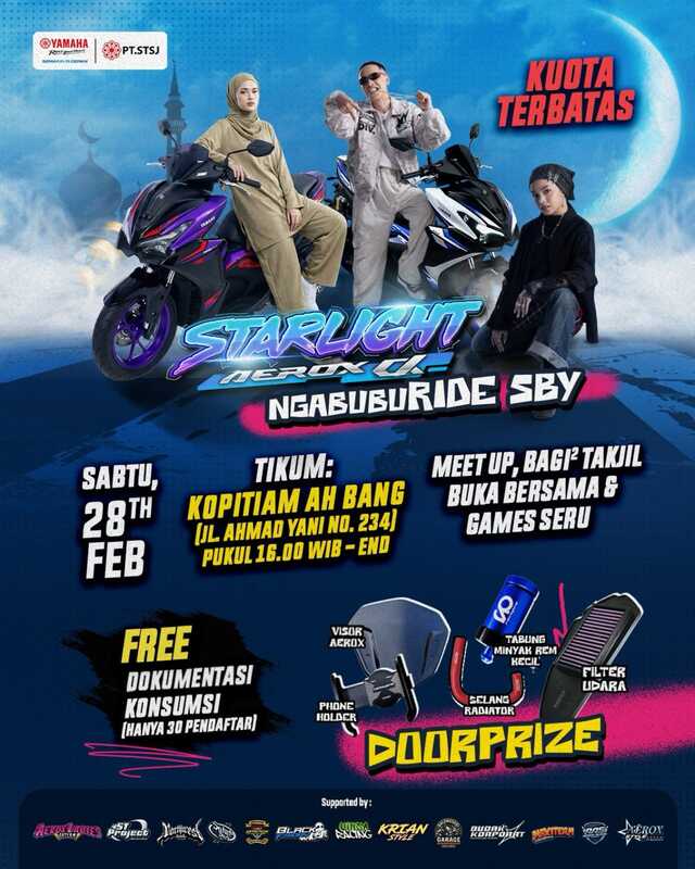 Kembali, ajang nongkrong anak muda pengguna Yamaha AEROX dihelat PT STSJ. Distributor Yamaha Jawa Timur ini melabeli acara ini dengan nama “Starlight AEROX Alpha Ngabuburide Sby”. Edisi bulan Ramadan nih..