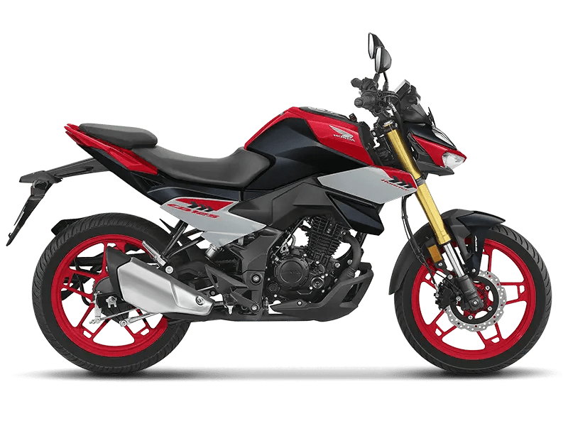 | Length:2015 mm Width:783 mm Height:1087 mm Wheelbase:1330 mm Ground Clearance:166 mm Kerb Weight:124 kg Seat Length:597 mm Fuel Tank Capacity:12 L | Type:4 Stroke, SI Engine Displacement:123.94 cc Max Engine Output:8.2 kW @7500 rpm Max Net Torque:11.2 N-m @6000 rpm Fuel System:PGM-FI Bore x Stroke:50.000 x 63.121 mm Compression Ratio:10.0:1 Starting Method:ACG | Clutch Type:Multiplate Wet Clutch No. of Gears:5 | Tyre Size & Type (Front):80/100 – 17 M/C 46P, Tubeless Tyre Size & Type (Rear):110/80 – 17 M/C 57P, Tubeless Brake Type & Size (Front):Disc – 240 mm Brake Type & Size (Rear):Drum – 130 mm | Frame Type:Diamond Type Front Suspension:Upside down Fork (USD) Rear Suspension:Monoshock | Battery:12V, 4.0 Ah Headlamp:LED Winkers:LED |
