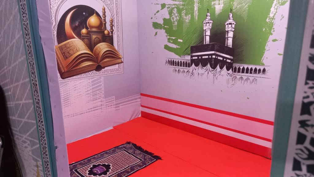 Tak lupa, tersedia juga tempat beribadah yang cukup lega dan nyaman. Peralatan sholat tersedia lengkap mulai sajadah, kopiah, mukena hingga tempat wudhu di area ini