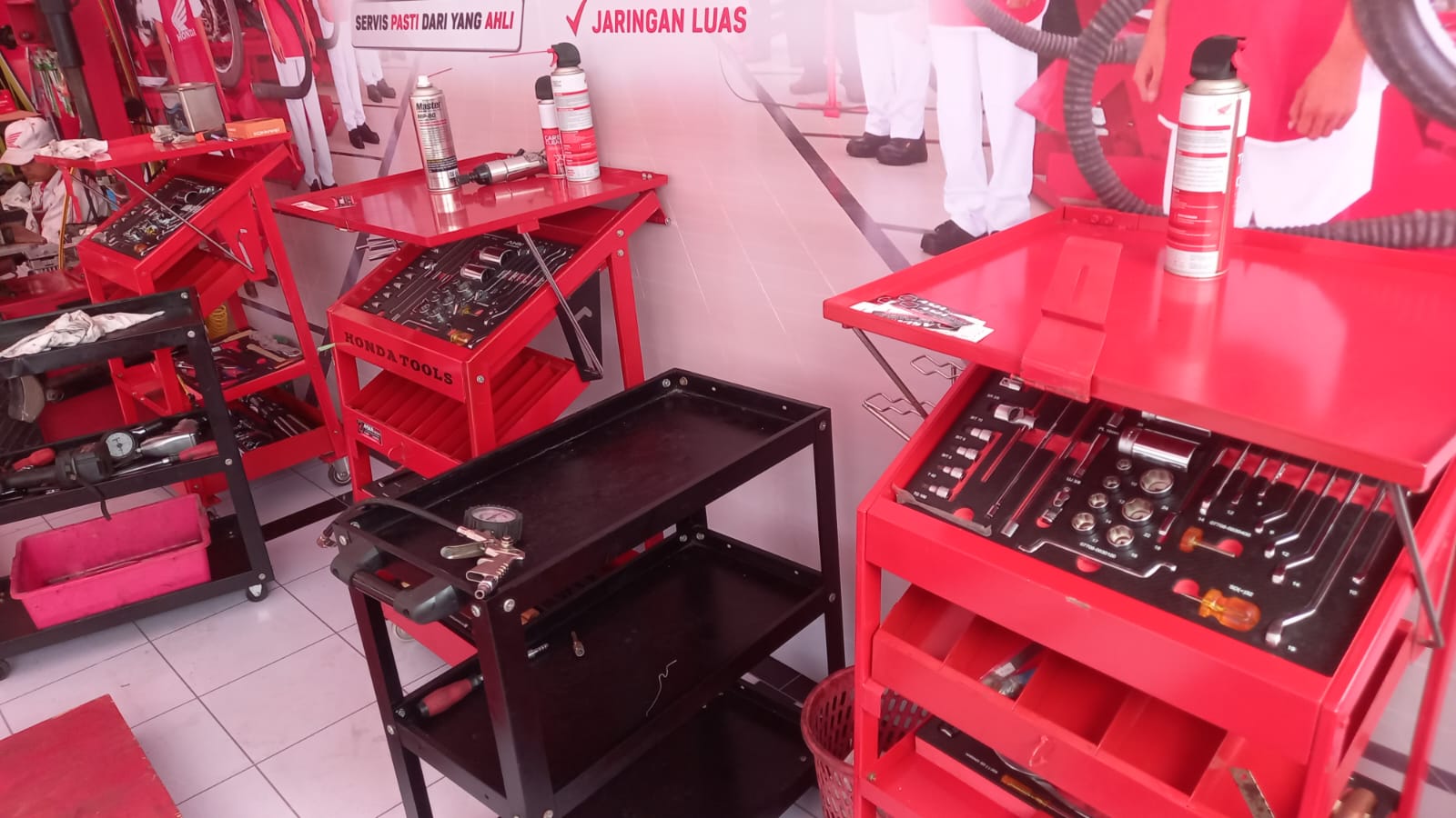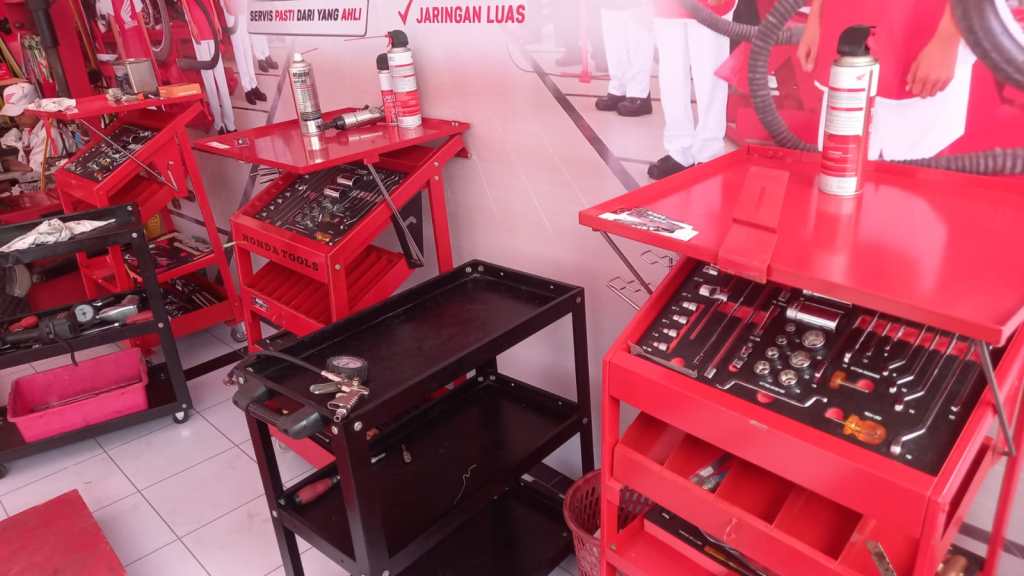 Yang pasti adalah layanan bengkel. Yups, ini memang sangat dibutuhkan pemudik, untuk memastikan sepeda motor yang digunakan saat mudik dan balik nanti kondisinya tetap baik sehingga aman dan nyaman saat perjalanan. Bengkel di BSH ini merupakan bengkel resmi AHASS yang “dipindahkan” ke lokasi berikut semua peralatan dan mekaniknya. Jaminan AHASS resmi nih masbro..