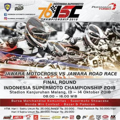 Kejuaraan Nasional Supermoto, alias Indonesia Supermoto Championship (ISC) 2018, telah memasuki seri akhir. Kebetulan, seri pamangkas ini, kembali ke Malang – Jawa Timur, yang dihelat pada Sabtu – Minggu 13-14 Oktober 2018 kemarin di sirkuit halaman Stadion Kanjuruhan, Kabupaten Malang