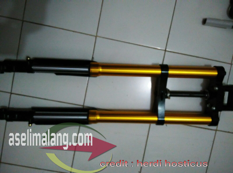Modifikasi pada motor, kadang nggak perlu kelewat absurd. Maksudnya, berlebihan Nggak perlu tampil ekstrim, seperti bodi diubah jadi segede gaban padahal gaban aja nggak gede amat, atau seluruh bagian motor dipoles krom mengkilap nan menyilaukan mata. Ubah kaki-kaki sudah bisa bikin tampilan mantap dan kekar, betull ???