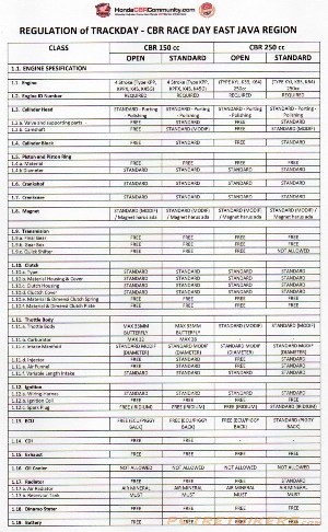 Ada 2 kelas yang dibuka, yaitu Community Class for 150cc & 250cc (standart) dan Non Community Class for 150cc & 250cc (open). Scrutineering, bakal dilaksanakan Sabtu, sehari sebelom lomba, yaitu tanggal 22 Juni 2019 dengan mengambil tempat di MPM Learning Center, Sedati, Sidoarjo.