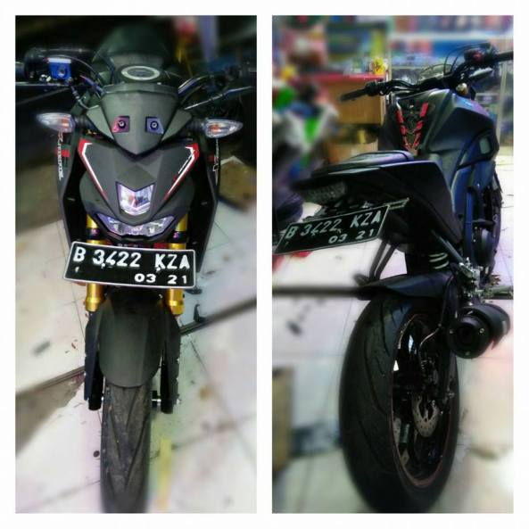Pabrikan sepeda motor di tanah air, semuanya memproduksi dan juga menjual sepeda motornya dengan terpasang semua kelengkapan yang disyaratkan oleh kepolisian. Wajib nih hukumnya, terpasang lampu depan belakang, lampu sein, spion, rem dan kelengkapan lainnya, termasuk nomor polisi disingkat nopol. Dudukan nopol di beragam sepeda motor yang beredar di tanah air juga bermacam-macam letaknya, tergantung model si motor. Yang jelas, nopol HARUS terpasang pada sisi depan dan belakang dari kendaraan.