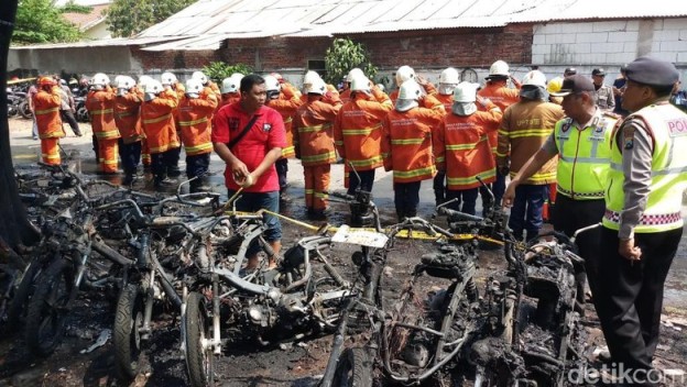 Ada salah satu motor, yang menurut saksi warga, bermasalah dengan sistem kelistrikan. Terjadi konsleting alias hubung singkat, dan membakar area tengah motor. Karena dekat dengan tangki bahan bakar, api makin cepat berkobar dan merembet ke motor lain yang secara posisi parkirnya berdempetan. Warga yang tahu, segera menghubungi PMK dan beberapa saat kemudian, meluncur 4 armada yang melakukan pemadaman. Meski begitu, mampu terselamatkan sebagian besar motor yang parkir.
