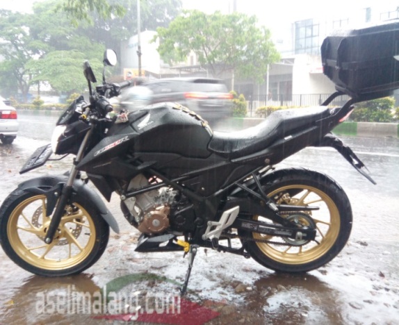 Dan nggak pake ribet, di garasi om Yusa, tinggal colok saja, sepasang velg aftermarket yang PnP alias plung eng play, masuk ke NCB. Velg lebar set , dengan lebar tepak depan 3 inchi dan belakang 4,5 inchi. Pas banget dipasangkan dengan ban depan 110/70-17 dan belakang 150/70-17
