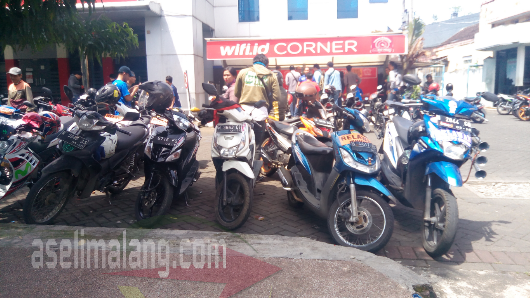 Nah, kepedulian warga Malang sendiri akan nasib pengguna angkutan umum, justru makin meningkat. Relawan dengan sepeda motor bahkan mobil, juga semakin banyak. Seperti gambar yang saia ambil di tikum/titik kumpul relawan di depan Telkom Kayutangan, Malang. Belasan sepeda motor berbagai merk dan tipe, juga beberapa mobil pribadi, tampak standby di lokasi tersebut.