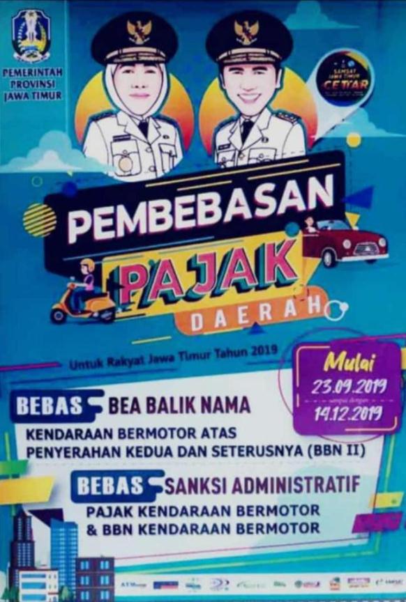 Khusus provinsi jawa Timur, mulai hari ini, Senin 23/09/2019, dibuka kembali program khusus yang mempermudah masyarakat Jatim, yang terbelit masalah PKB kendaraan bermotor. Yaitu Pembebasan Pajak Daerah Jawa Timur 2019. Lebih akrab dan dipahami sebagai pemutihan pajak di kalangan masyarakat.