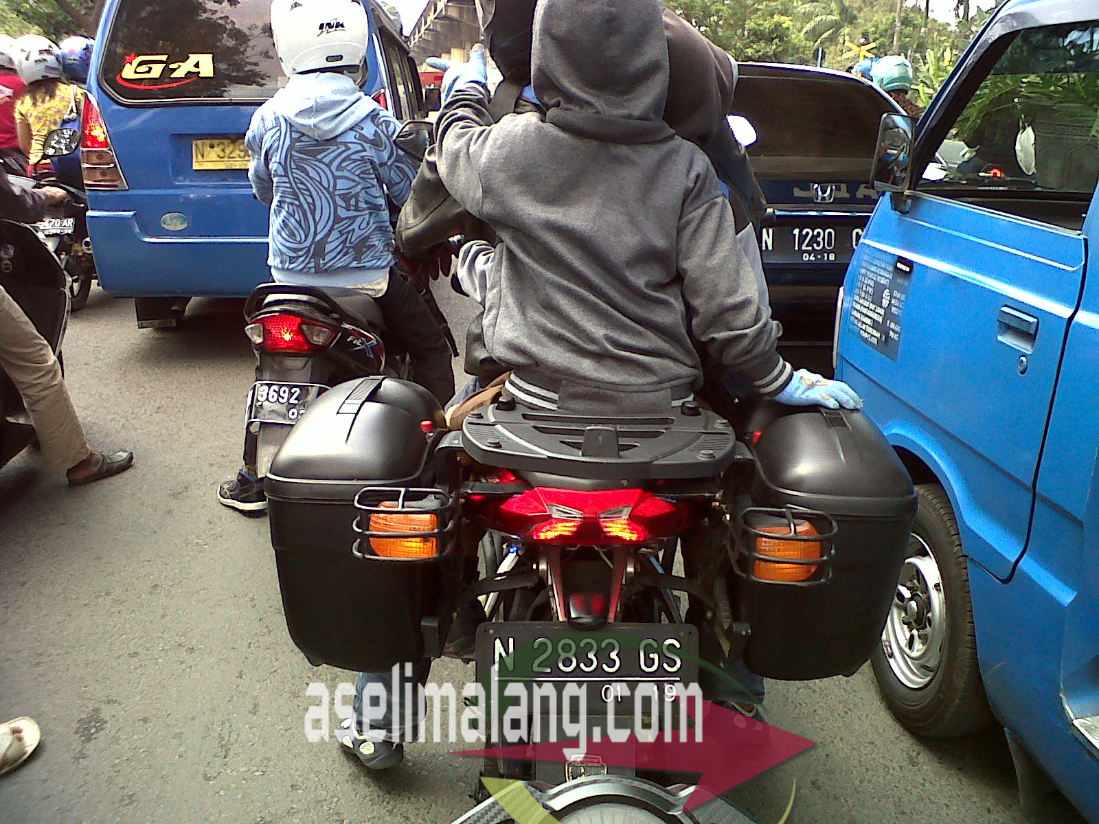 Maraknya modifikasi, dengan berbagai aliran, memang meramaikan dunia otomotif Indonesia. Berbagai aliran tumpah ruah, entah itu motor bebek, motor matik, atau juga sport. Malah banyak, akhirnya yang malah mengesampingkan faktor keamanan/safety…demi gaul modifikasi π Berkaitan faktor keamanan, pas saia jepret gambar di bawah, kok kayaknya masuk alias klop ya??
