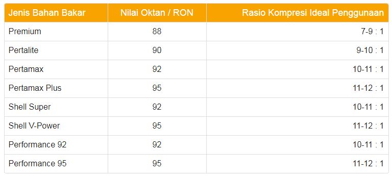 Bahan bakar minyak (BBM) merupakan asupan vital buat kendaraan bermotor, yaitu sebagai sumber bahan pokok untuk dibakar, dan menghasilkan tenaga pada roda. Ada beberapa macam BBM yang punya jenis berbeda, yaitu pada nilai oktannya, tergantung pada spesifikasi mesin yang bakal mengkonsumsinya.