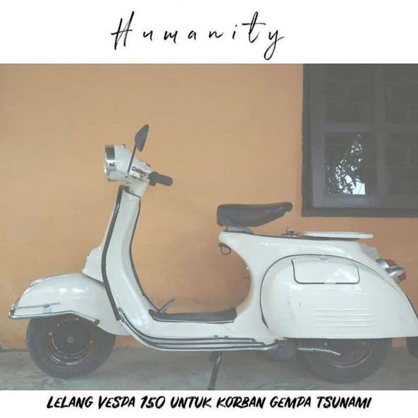 Saia ketemu sebuah postingan di media sosial, tentang sebuah aksi dari pecinta otomotif, yaitu Vespa. Dari akun @naikvespayuk, sebuah lelang untuk amal bagi korban bencana di Palu dan Donggala dibuka. Obyek lelangnya, adalah sebuah Vespa 150 lawas. Akun ini merepost postingan dari pemilik langsung, yang menurut informasi adalah warga Makassar.