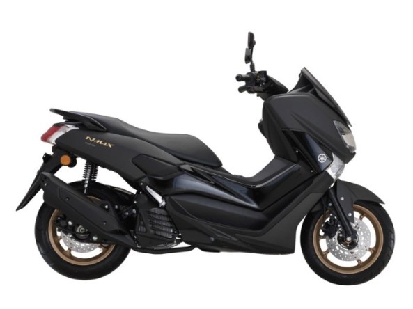 Nah, pabrikan Yamaha di negeri sebelah, ternyata juga mengeluarkan warna yang serupa untuk jajaran produk skutiknya. Apalagi kalau bukan Yamaha NMax. Skutik bermesin 150cc dengan teknologi VVA ini, muncul lebih sangar dengan warna hitam doff dan velg warna emas.